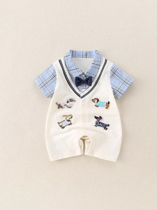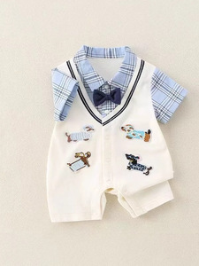 ベビーサマードレス、ベビー男の子半袖ジャンプスーツ、夏用薄手カーディガン半袖、ネットセレブハーレム、ハンサムロンパース、夏