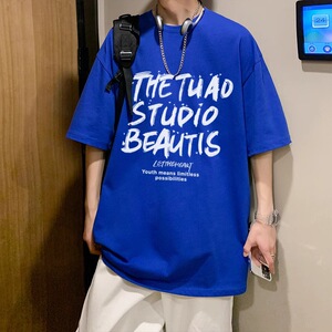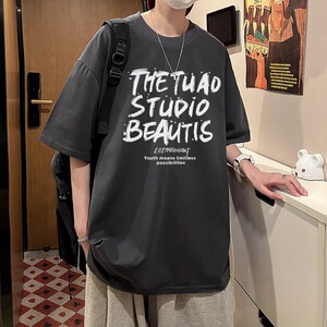 潮牌純綿アルファベット半袖tシャツ男性夏のゆるいtシャツごろつきイケメンカップル上着丸襟tシャツ