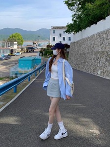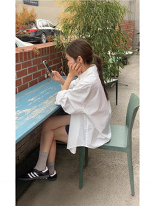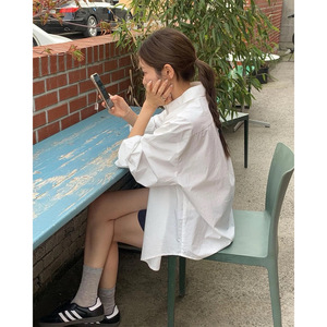 白い長袖のシャツの女性2025春と秋の韓系のゆったりとした郭の形はカジュアルな純綿の日焼け止めのシャツのオーバーを合わせます。