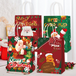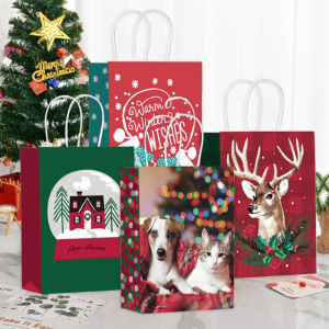 絶妙なカラープリントのクリスマスギフトバッグ12個、サンタクロース、新年のお土産ギフト包装、携帯用紙袋