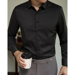 黒のシワ防止シャツ メンズ 長袖 白 春 通勤 ビジネス ノーアイロン フォーマル 高級シャツ