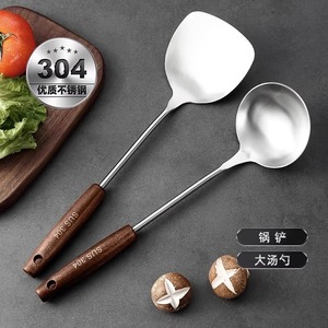 304 ステンレス鋼スパチュラキッチン用品セット木製ハンドル調理スパチュラザルスプーン調理スプーンキッチン用品