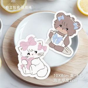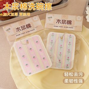 かわいい天然木質綿の食器を洗って台所用品を拭きます。