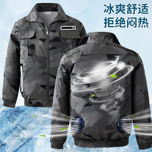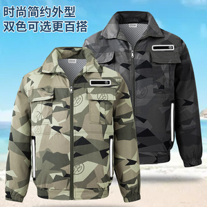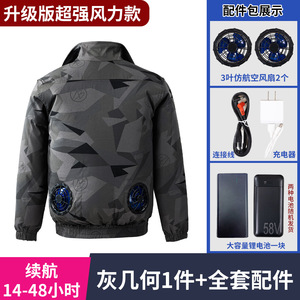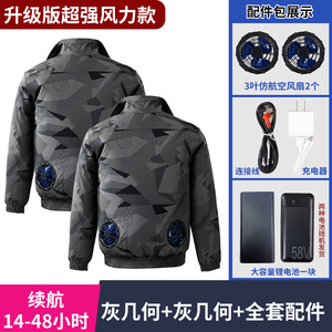 黒の幾何学模様の空調服 2 枚 [付属品付き]