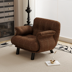 フレンチミッドセンチュリークリームスタイルカジュアルチェアダブル小さなアパート怠惰なファブリックハイフットベッドルームシングルソファチェアリビングルーム
