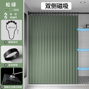 松葉グリーン - 両面磁気増粘:(シングルカーテン + 伸縮ロッド + フック + ストラップ)
