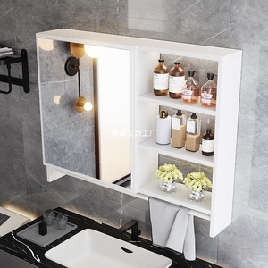 卫生间梳妆镜柜挂墙式洗漱台厕所镜子收纳一体柜浴室镜子带置物架