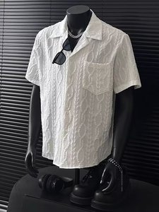日本系の再キューバ襟高級デザイン感があります。半袖シャツ男性ファッションブランドの民族風五分袖夏服です。