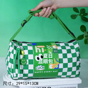 グリーンのチェック柄バッグ、ガードルアクセサリーなし