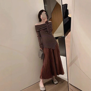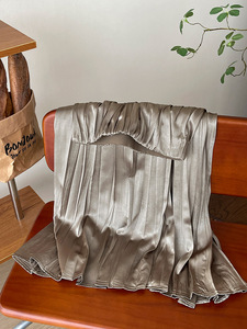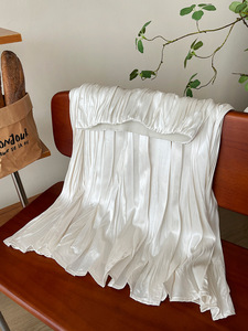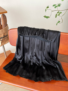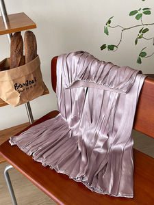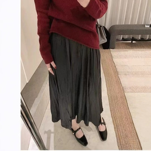 ヨーロッパの高級ストリーマーサテンプリーツスカート女性の夏の新しいハイウエストスリム大きな裾Aラインロングスカート