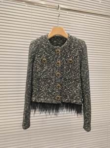2025フランスの名媛の小さい香風のデザイン感の裾の羽の単列はメリヤスのカーディガンの気質の優雅な短い上着を掛けます。