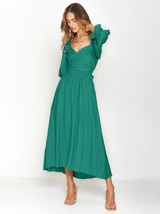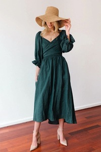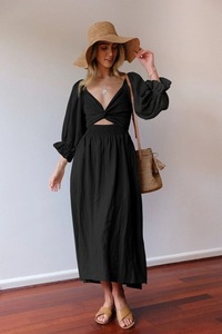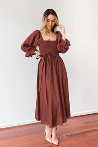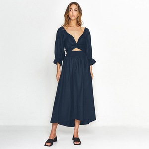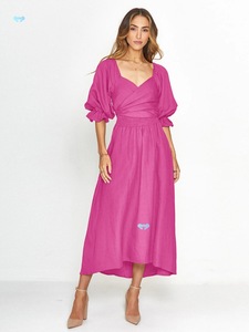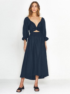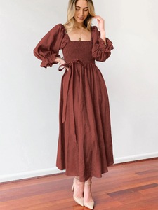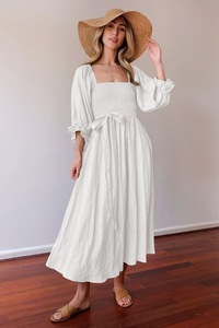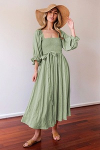 ソリッドカラースクエアカラーホーンスリーブドレス スクエアカラーホーンスリーブドレス