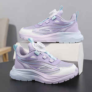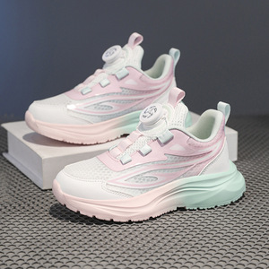 女の子の靴 2025 夏の新しいメッシュシューズ中型および大型子供用カジュアル回転バックルスポーツランニングシューズ小学生男子用
