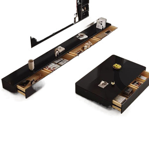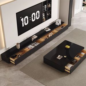 黒のコーヒーテーブルとテレビキャビネットの組み合わせホームリビングルーム新しい小さなアパートメント床置きテレビキャビネットレンタルルームガラスコーヒーテーブル