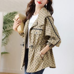 高级感休闲连帽风衣新款宽松收腰显瘦气质时尚印花小个子夹克外套