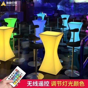 クロスボーダー発光バーカウンターカラフルなカクテルテーブルナイトクラブKTVホテルクリアバーテーブルと椅子プラスチックバーハイテーブル