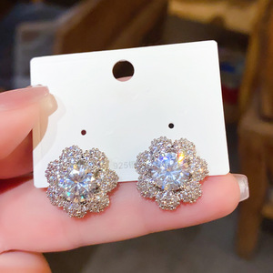 シルバー針スーパーフラッシュライト高級スタイルジルコンフラワーイヤリングファッショナブルで絶妙なニッチ気質花びらハイエンドイヤリング女性用