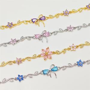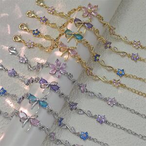 クロスボーダーのかわいい甘くて精巧なジルコンの蝶結びのブレスレットの手はファッションの葉の花のペンダントのブレスレットの女性を飾ります。