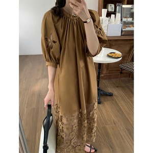 韓国シックな怠惰なスタイルのドレス女性の夏のティーブレイクフレンチスタイル中空レースルーズカジュアルロングスカート