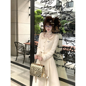 法式千金名媛娃娃领短外套秋季新款洋气高腰显瘦半身裙两件套女装
