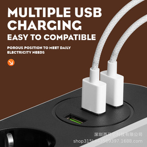 5M ヨーロッパ標準 2 丸ピン電源ストリップ USB トラベルアダプターソケット電源プラグ EU 5m 延長ケーブル