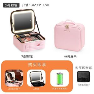 【Sサイズ ピンク】全面化粧鏡+LEDライト+メイクブラシバッグ☆♢