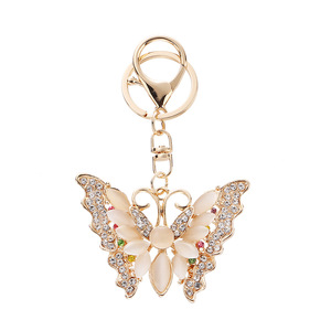 クリエイティブダイヤモンドキャッツアイ女神蝶車のキーホルダーレディースバッグバックルアクセサリーペンダント昆虫キーチェーン