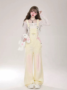多巴胺渐变带奶fufu背带裤女春夏美式复古甜酷辣妹连体牛仔背带裤