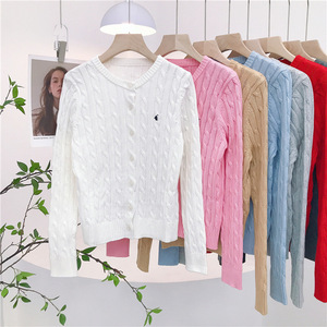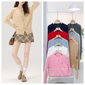 7907 春韓国年齢軽減無地ラウンドネック麻模様刺繍ルーズレイジーニットセーターカーディガンジャケット