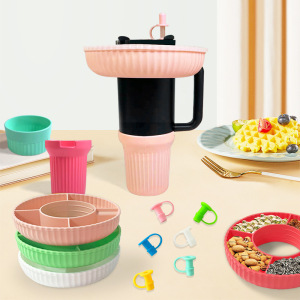 工場直販食品グレードシリコン防塵カップセットアウトドアキャンプ滑り止め断熱分割プラッター滑り止めカップセット