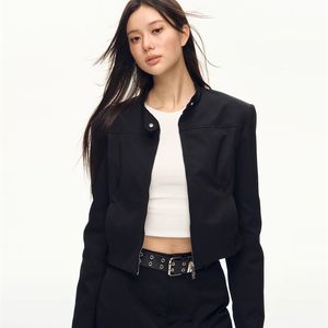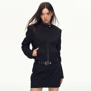 アメリカンレトロ甘くてクールなホットガールスタイルの黒のスタンドカラーショートジャケット女性のための春スリムフィットジャケットトップトレンディ