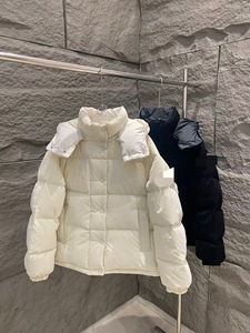 2025 Mengjia ダウンジャケット 新しい気質通勤オフショルダーショートシルエット年齢軽減暖かいホワイトグースダウンフード付きダウンジャケット