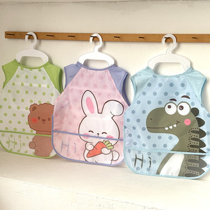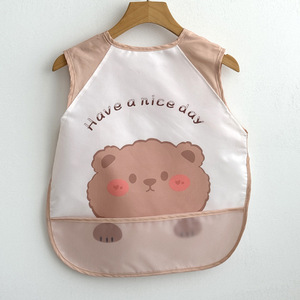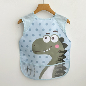 子供用防水スモック、ベビーサマーノースリーブライスバッグ、ベビー食事防汚服、ツーピースよだれかけ、逆着用