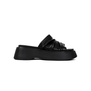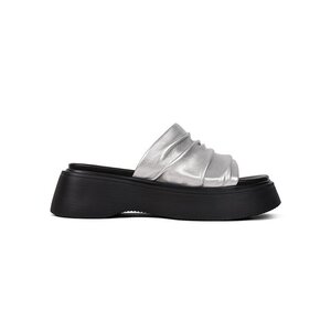 厚い底は高くてしわの皮の1字のスリッパの女性の夏2025新型の外は柔らかい皮のモチモチとしているビスケットの底の冷たいサンダルを着ます。