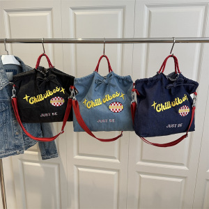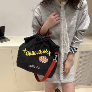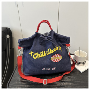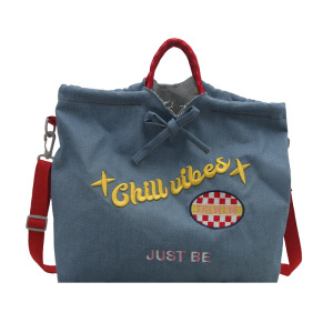 刺繍文字パーソナライズされたトレンド 2025 新しい大容量ポータブルデニムショルダートートメッセンジャーバッグ女性のための