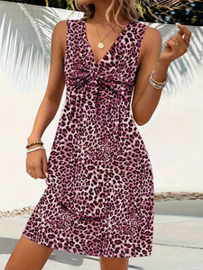 2025 春夏ヨーロッパとアメリカのクロスボーダー新しい婦人服アマゾン独立ステーションツイストヒョウプリント婦人服ドレス女性