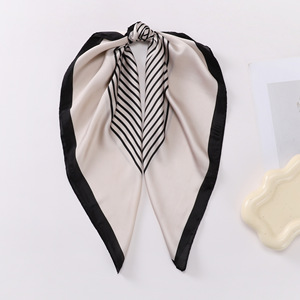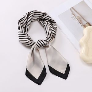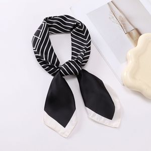 黒と白のストライプ 70 小さな正方形のスカーフ女性のハイエンド春と夏の新しいシンプルな模擬シルク装飾小さなスカーフ