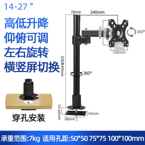 厂家批发显示器桌面增高横竖屏旋转高度可调穿孔安装电脑支架