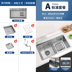 台所の大きな単槽4mmの厚い米粒のエンボス洗浄器SUS304ステンレス鋼の集滓付き洗面器水槽