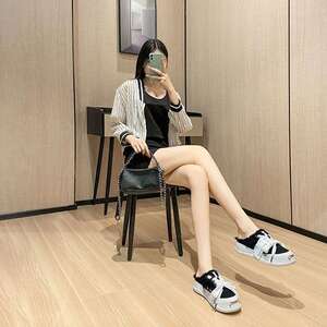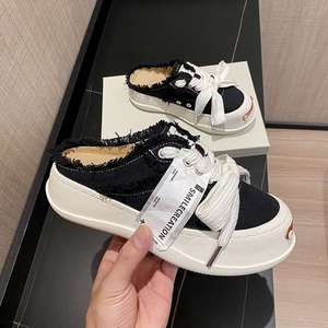 スリッパ、婦人靴、キャンバスシューズ、レイジータン・ジャンシー同型シューズ、つま先ハーフスリッパ、婦人片足厚底カジュアルスニーカー