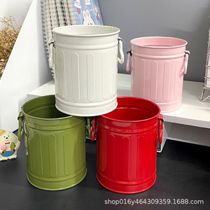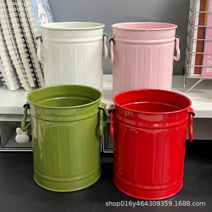 アメリカンレトロな鉄ペンホルダークリエイティブかわいい学生デスクトップリビングルームオフィス文具化粧ブラシ収納小さな鉄のバケツ