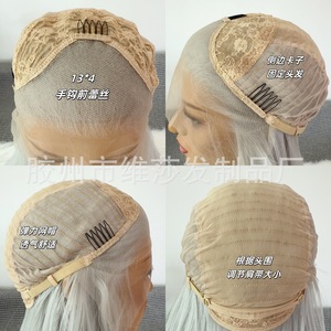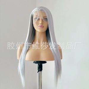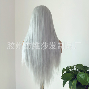 外国貿易シルバーホワイトグレーロングストレートヘアハンドフック13*4フロントレース化学繊維高温シルクウィッグフルヘッドセットユニバーサルcos