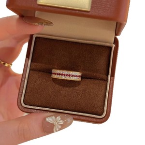 レトロな干支年レッドコランダムダイヤモンドリングヘビーデューティハイエンドライトラグジュアリーローズ3列ダイヤモンドルビー人差し指リング