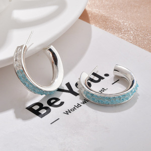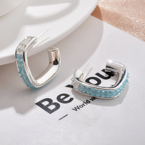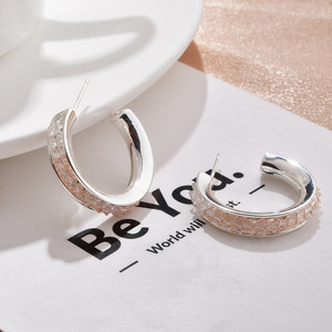 韓国の春夏の新鮮で甘いC字型グラデーションクリスタルイヤリング、フェアリースタイルのニッチデザインイヤリング