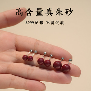 999 スターリングシルバーレッドお祝い辰砂イヤリングピアスネジフリー人気の新しいハイエンド気質イヤリング