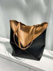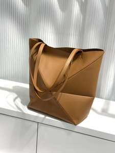 本革折りたたみジオメトリックバッグ大容量カジュアルトートバッグレディース新作ファッション質感通勤ワンショルダーバッグmサイズ