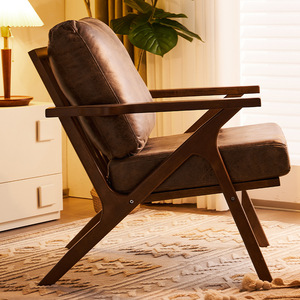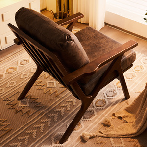 デザイナーディスカッションチェアシングルソファリビングルームバルコニーレジャーチェアウォールナットシングルチェアレトロハイエンドソファチェア