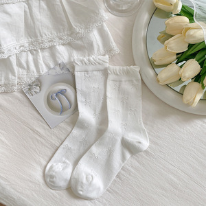 春の夏の薄い蝶結びの花の縁の靴下の子供の中の筒の靴下のinsの潮のかわいい泡の純色の山のストッキング
