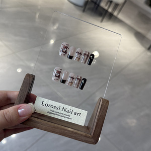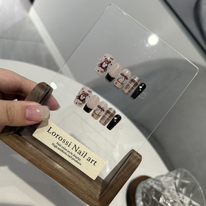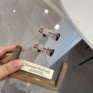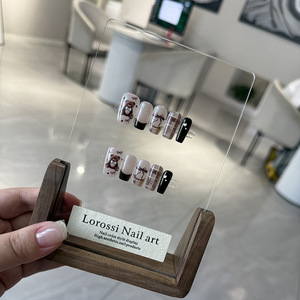 完成した茶色のチェック柄クマブティックウェアラブルマニキュア新しいins漫画かわいいインターネット有名人偽ネイルパッチ