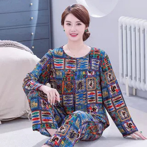 綿のパジャマの女性の長袖のお母さんの春秋の家の服の人工綿のスーツの女性のおばあさんの中高年の綿織物
